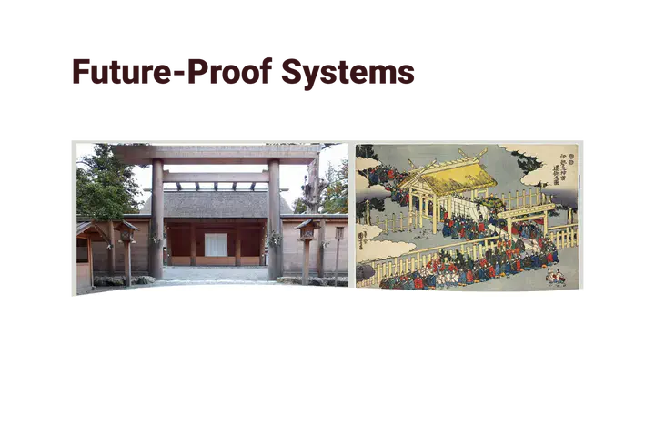 An iconic metaphor for this principle is the Ise Grand Shrine in Japan, which has stood for 1,600 years not because its wooden structures never decayed, but because the knowledge of renewal was embedded in its design and passed on through generations. Likewise, regenerative digital systems preserve not just the data, but the know-how to keep it alive, relevant, and resilient.